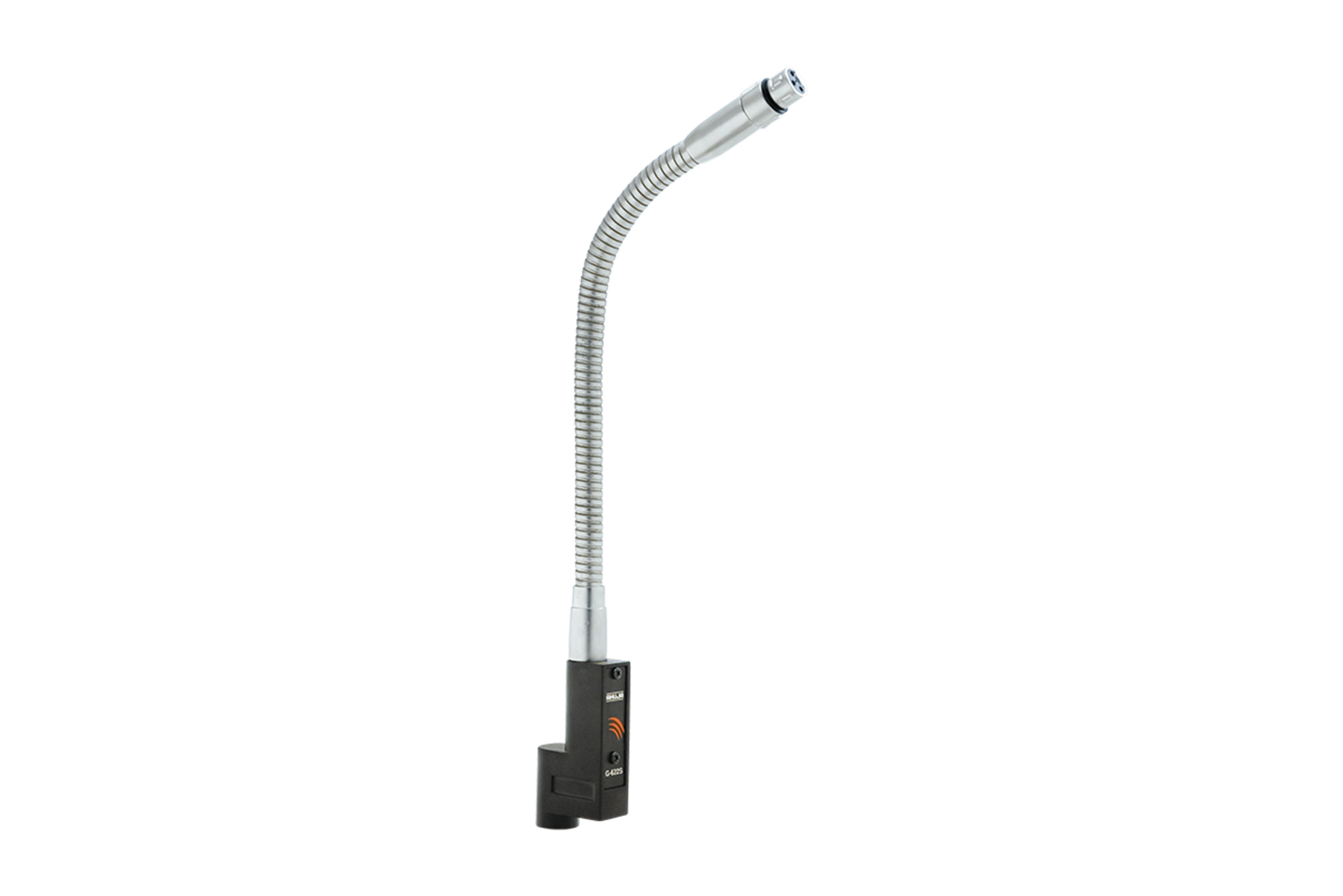 Strong 10” long flexible gooseneck shaft in silver finish. Exclusively designed for converting any XLR microphone into a gooseneck microphone. A female XLR connector is provided at the top for connecting any XLR microphone and a male XLR connector has been provided at the bottom for connecting the microphone cable. Fitted with stand mount base to match all Ahuja PA Microphone Stands.