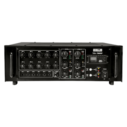 The Ahuja TZA-7000DP is a high-performance digital PA amplifier with a maximum power output of 700 watts. It features advanced connectivity options and advanced digital features such as a built-in limiter and protection circuitry, making it an ideal choice for professional audio applications.