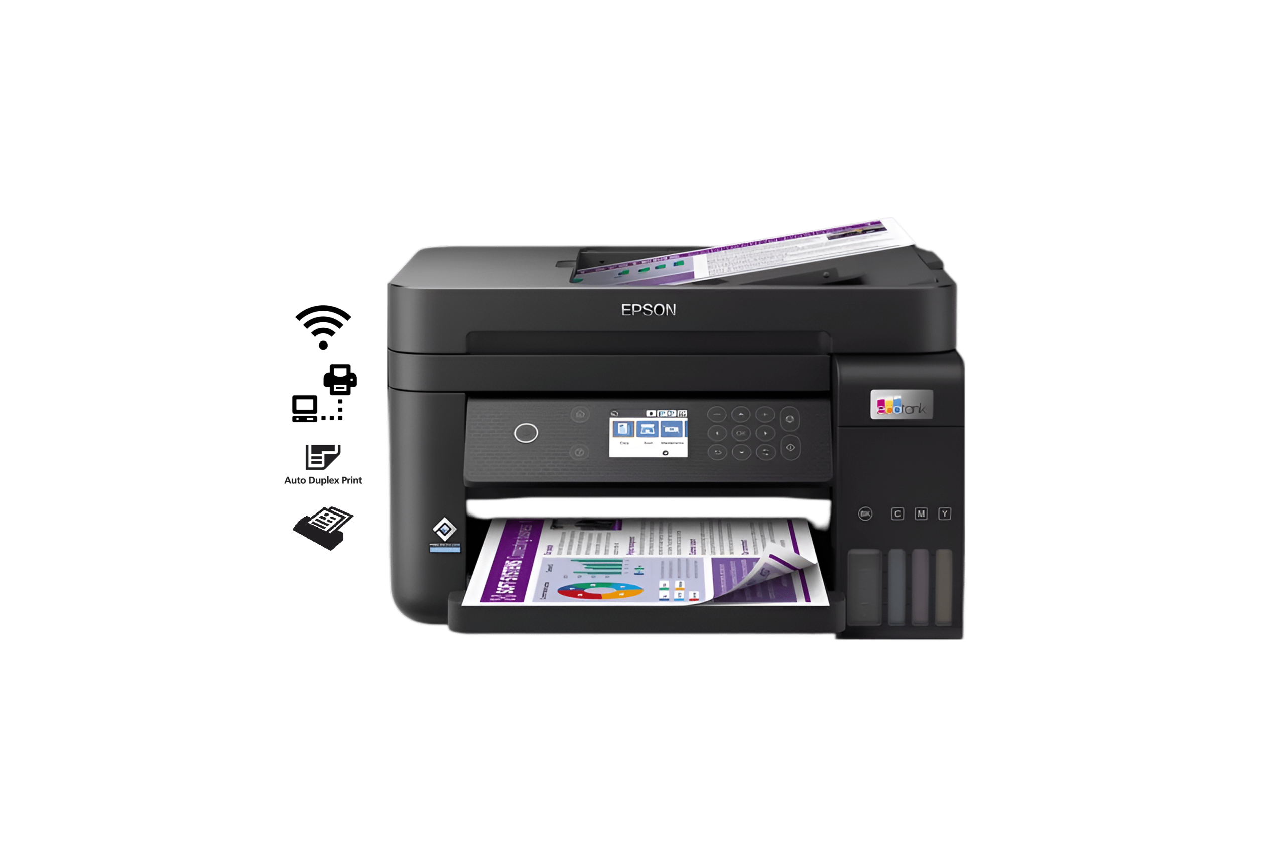 The Epson EcoTank L6270 is a compact 3-in-1 ink tank printer designed for home and small office use. It offers automatic duplex printing, a 30-sheet ADF, and borderless printing up to A4 size. With high page yields of up to 14,000 black and 5,200 color pages, it ensures cost-efficient operation. Wi-Fi, Wi-Fi Direct, and Ethernet connectivity support seamless mobile printing via the Epson Smart Panel App. Powered by Heat-Free Technology, it delivers fast, high-quality prints with reduced energy consumption. Ideal for businesses needing reliable, low-cost printing with minimal maintenance.