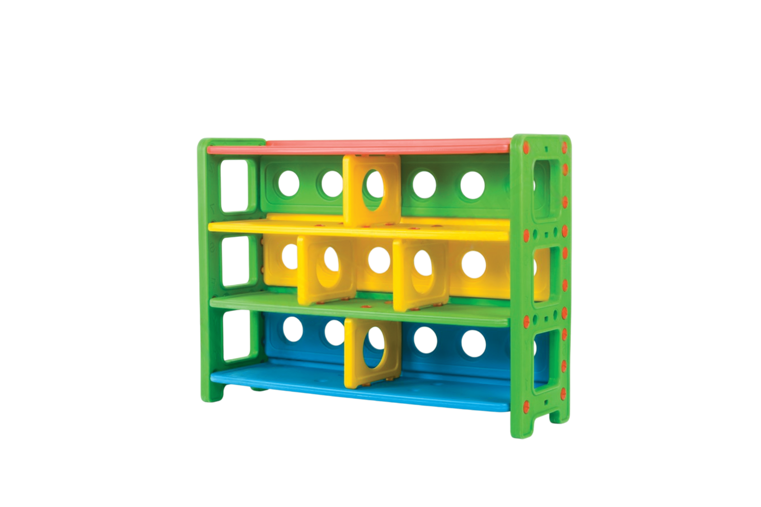 The Playgro PSF-508 is a children’s adjustable shelf designed to organize books, toys, and stationery. Manufactured by Playgro Toys India Pvt. Ltd., this three-tier shelf is suitable for use in homes, daycares, and preschools. It is constructed from durable plastic and features vibrant colors that appeal to children. The shelf measures approximately 81.3 cm in length, 34.3 cm in width, and 81.3 cm in height. Assembly is required, and an assembling manual is included.