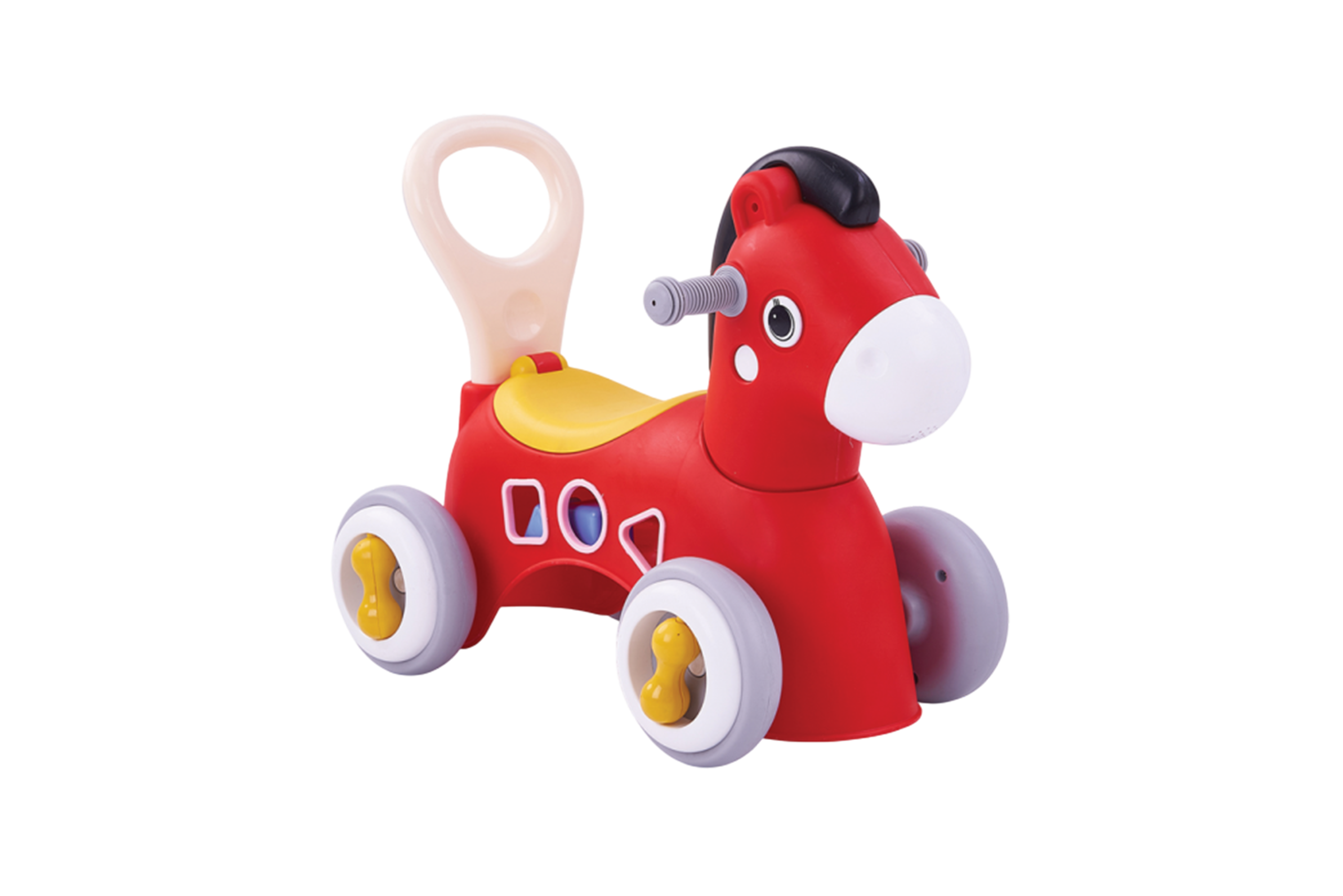 The Pinto Rider, is a versatile ride-on toy designed for young children. It features a built-in storage compartment beneath the seat, allowing kids to store small toys or belongings. The Pinto Rider also includes three shape-sorting blocks, promoting cognitive development and hand-eye coordination. With smooth wheels and a lightweight design, it is suitable for both indoor and outdoor use. The toy can support up to 20 kg and is recommended for children aged 1 to 3 years